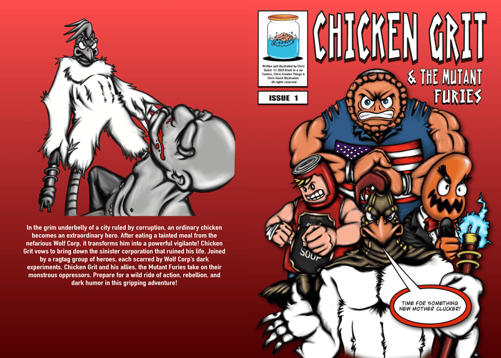Work has been going incredibly well on our debut comic book, Chicken Grit & The Mutant Furies so well that I'm excited to announce that we'll be launching our comic on November 13th. The comic book will be available through Amazon or directly from the Chris Creates Things store.