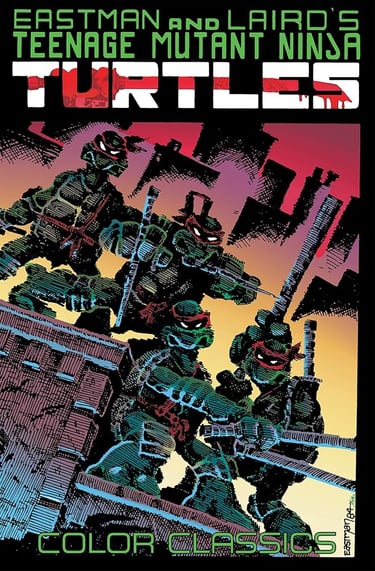 Spiderman is my absolute favourite superhero and his iconic look was created by Steve Ditko, this led me to Marvel comics and the work of Jack Kirby. His art style, the 'Kirby krackle', and how he created such movement on a static page fascinated me. Growing up, I loved the Fighting Fantasy novels (they're still a great read as an adult now!). These choose-your-own adventures were brilliantly illustrated and the black pen and ink style of Russ Nicholson really resonated and shaped my drawing style massively. Finally, Eastman and Laird, the creators of Ninja Turtles. I can remember vividly being given the original comic as a kid. Of all the comics I've read, either before that moment or indeed after, there's not one that has influenced me more. It was gritty, cool, unflinching and I loved it.