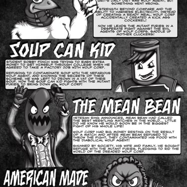 In a city gripped by corruption, Chicken Grit, a mutant chicken is born from Wolf Corp’s sinister experiments! With a punk attitude and razor-sharp beak, he teams up with the Mutant Furies, a gang of rebellious misfits, to take down their evil oppressors.