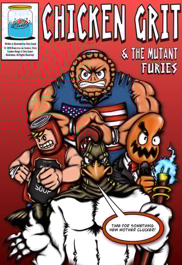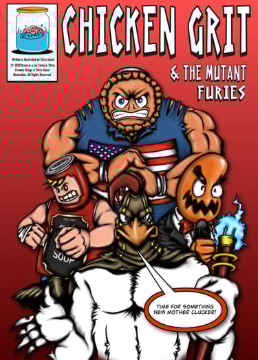 Welcome to Brain in the Jar Comics, where nostalgia meets modern. Our fledgling company launches with "Chicken Grit & The Mutant Furies," a wild ride inspired by the rebellious spirit of the 80s and 90s cartoons. Dive into our world full of stories that blend punk attitude, gritty action, and unforgettable characters!